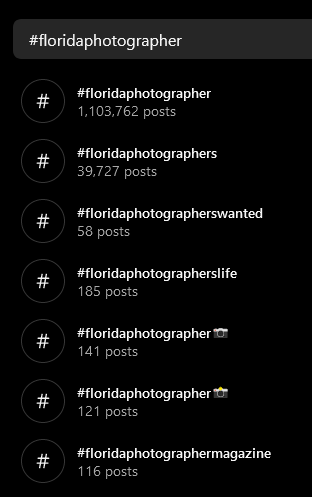 If you want to target Florida photographers, you'll have to search through 10 hashtags.