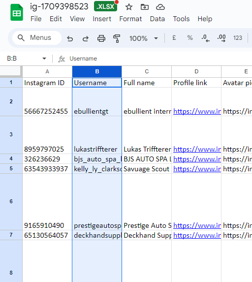 Remember, you only need the usernames from the exported sheet.